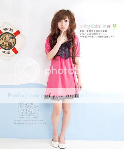 人气热卖蝴蝶结纯真可爱点点连衣裙